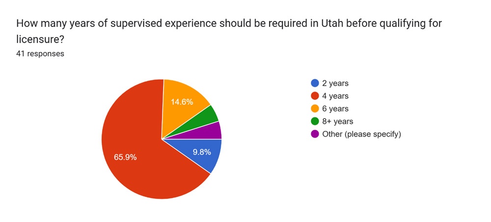 - The most recommended duration for supervised experience is “4 years” (42 out of 61 responses).